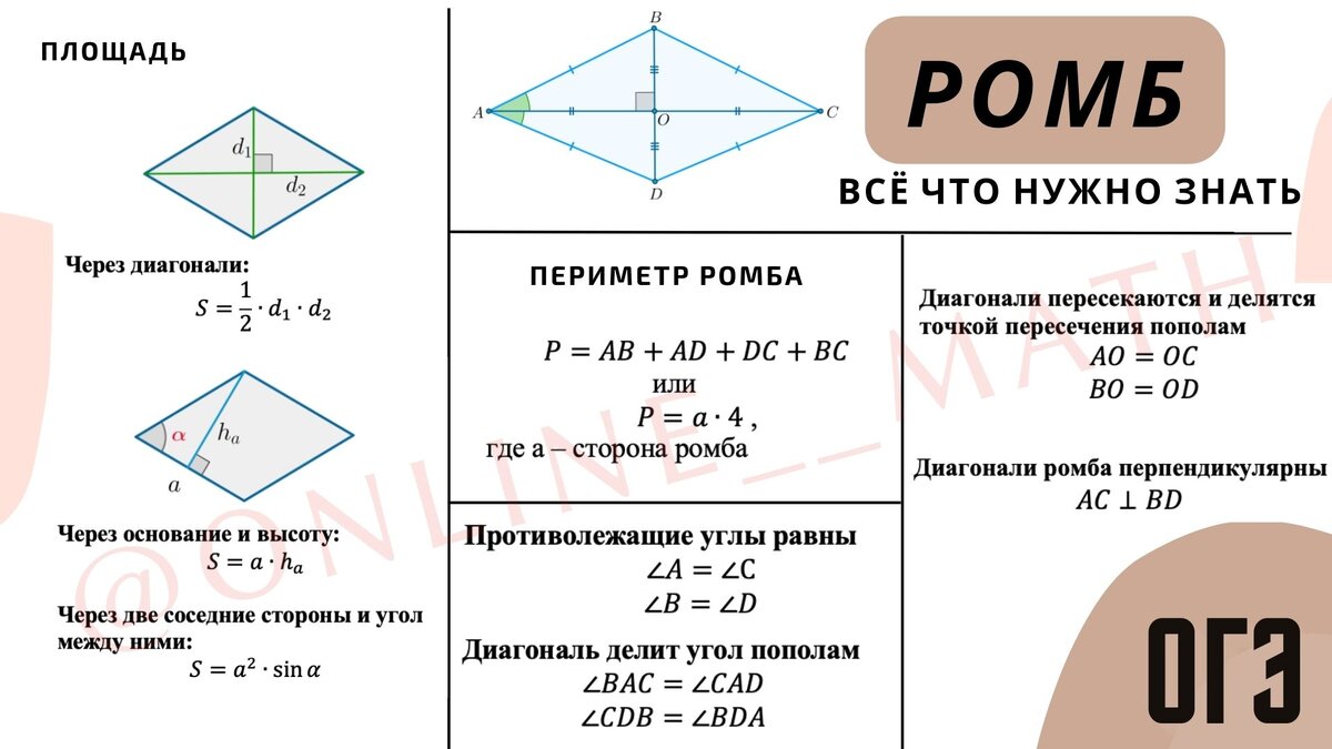 На этой странице собраны материалы по запросу Ромб Свойства Формулы Задачи.